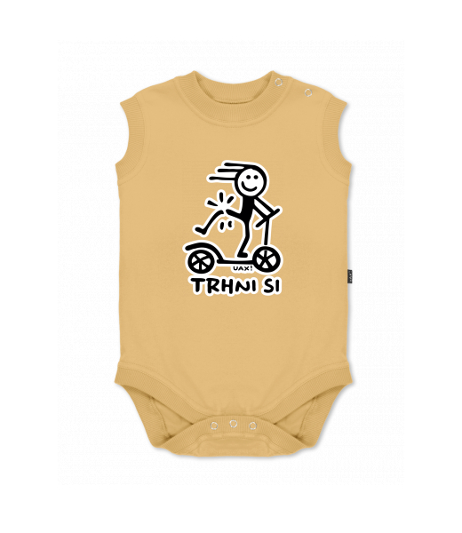 Dětské body bez rukávů pro děti s potiskem 1357 TRHNI SI NOHOU v barvě MUSTARD