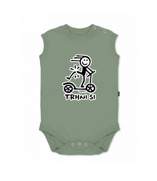 Dětské body bez rukávů pro děti s potiskem 1357 TRHNI SI NOHOU v barvě OLIVA