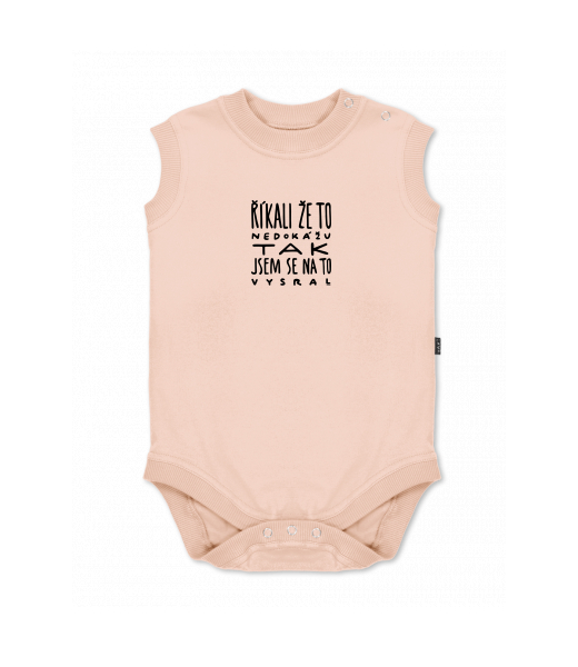 Dětské body bez rukávů pro děti s potiskem 1366 ŘÍKALI ŽE TO NEDOKÁŽU TAK JSEM SE NA TO VYSRAL v barvě CAPPUCINO