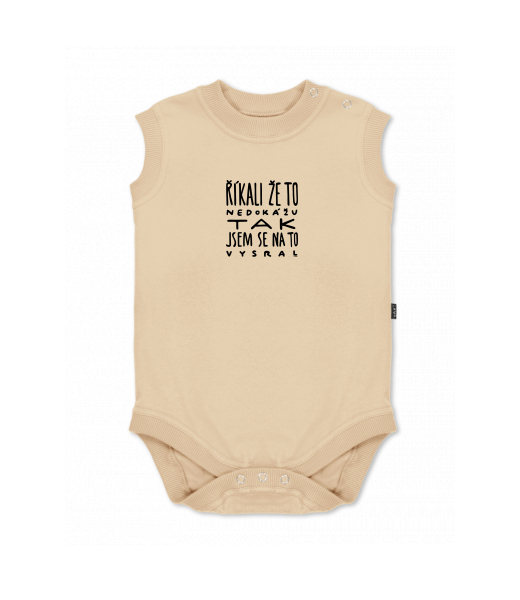 Dětské body bez rukávů pro děti s potiskem 1366 ŘÍKALI ŽE TO NEDOKÁŽU TAK JSEM SE NA TO VYSRAL v barvě CARAMEL