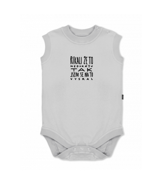 Dětské body bez rukávů pro děti s potiskem 1366 ŘÍKALI ŽE TO NEDOKÁŽU TAK JSEM SE NA TO VYSRAL v barvě CEMENT