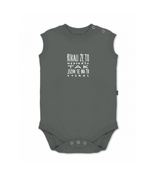 Dětské body bez rukávů pro děti s potiskem 1366 ŘÍKALI ŽE TO NEDOKÁŽU TAK JSEM SE NA TO VYSRAL v barvě DARK GRAY