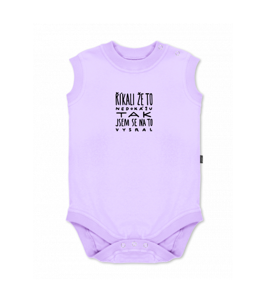 Dětské body bez rukávů pro děti s potiskem 1366 ŘÍKALI ŽE TO NEDOKÁŽU TAK JSEM SE NA TO VYSRAL v barvě LAVENDER