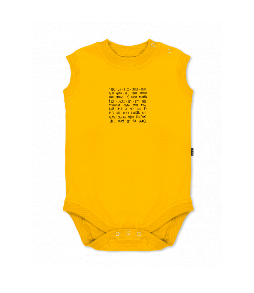 Kvalitní bavlněné dětské body bez rukávů je vyrobeno ze 100% bavlny s možností výběru originálních potisků s optimistickým pohledem na svět.