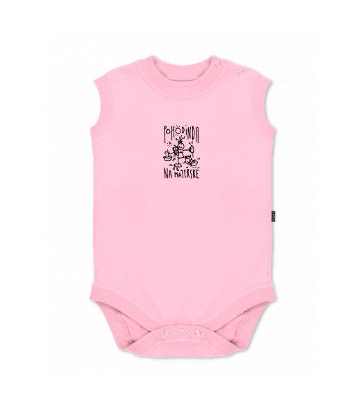 Dětské body bez rukávů pro děti s potiskem 1383 POHODINDA v barvě BABY PINK