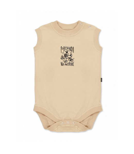 Dětské body bez rukávů pro děti s potiskem 1383 POHODINDA v barvě CARAMEL
