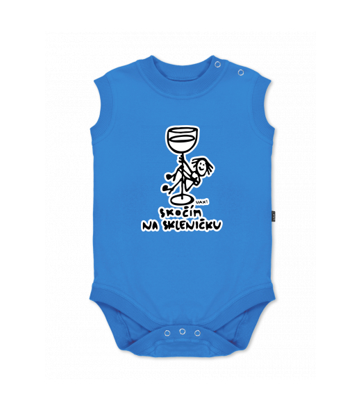 Dětské body bez rukávů pro děti s potiskem 1384 SKOČÍM NA SKLENIČKU v barvě CAPRI BLUE