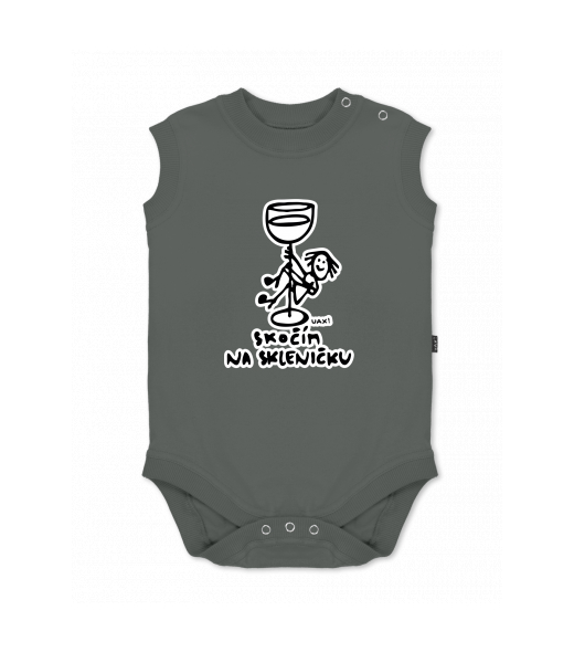 Dětské body bez rukávů pro děti s potiskem 1384 SKOČÍM NA SKLENIČKU v barvě DARK GRAY