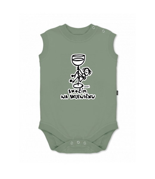Dětské body bez rukávů pro děti s potiskem 1384 SKOČÍM NA SKLENIČKU v barvě OLIVA