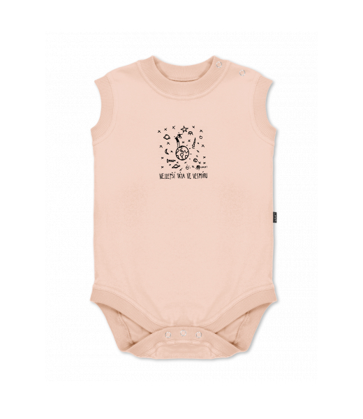 Kvalitní bavlněné dětské body bez rukávů je vyrobeno ze 100% bavlny s možností výběru originálních potisků s optimistickým pohledem na svět.