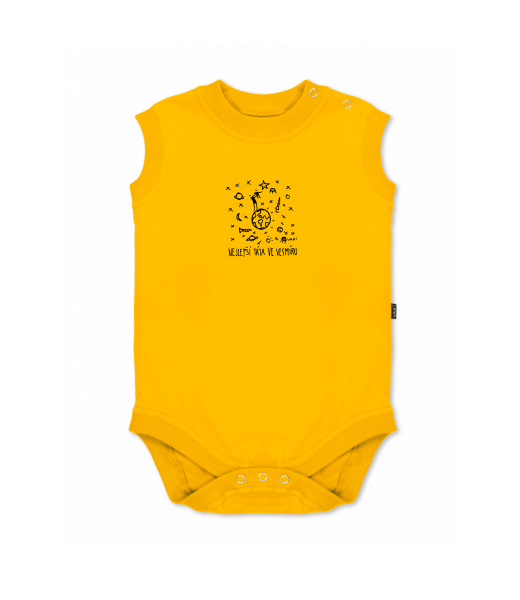 Kvalitní bavlněné dětské body bez rukávů je vyrobeno ze 100% bavlny s možností výběru originálních potisků s optimistickým pohledem na svět.