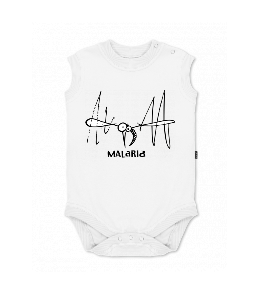 Dětské body bez rukávů pro děti s potiskem 361 MALARIA v barvě WHITE
