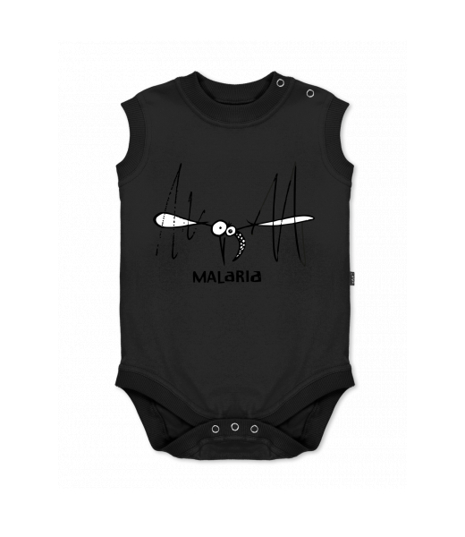 Dětské body bez rukávů pro děti s potiskem 361 MALARIA v barvě BLACK