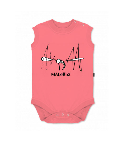Dětské body bez rukávů pro děti s potiskem 361 MALARIA v barvě LOSOSOVA