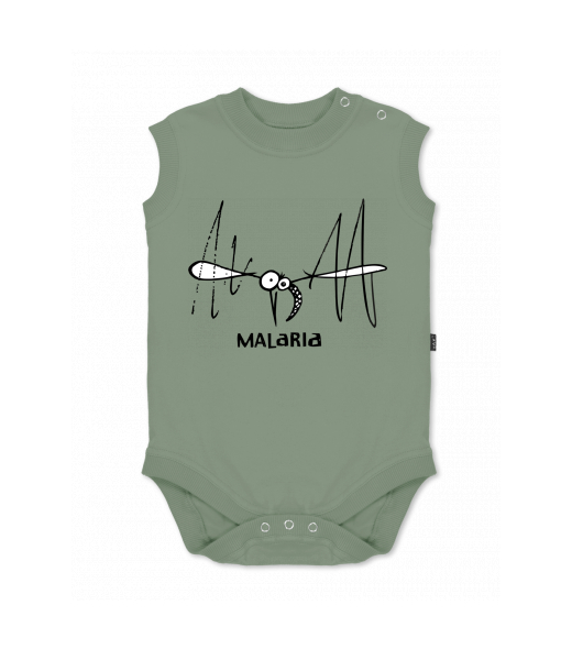 Dětské body bez rukávů pro děti s potiskem 361 MALARIA v barvě OLIVA