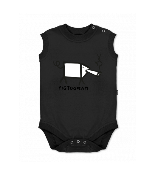 Dětské body bez rukávů pro děti s potiskem 367 PIGTOGRAM v barvě BLACK