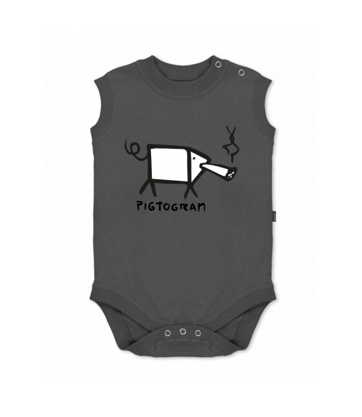 Dětské body bez rukávů pro děti s potiskem 367 PIGTOGRAM v barvě GRAFIT