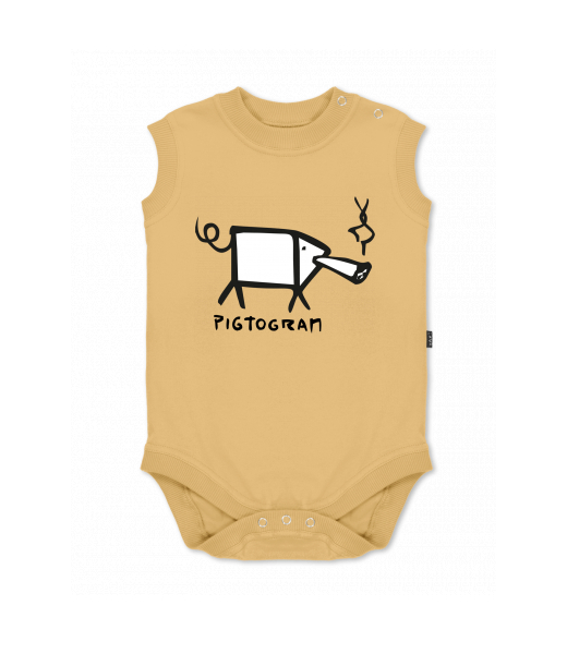 Dětské body bez rukávů pro děti s potiskem 367 PIGTOGRAM v barvě MUSTARD