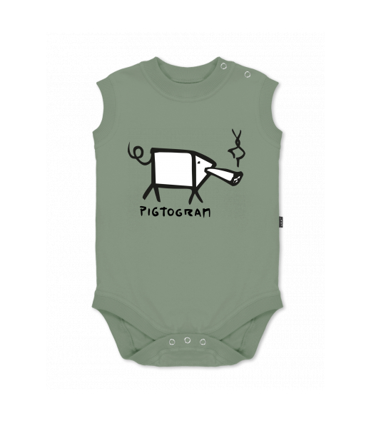 Dětské body bez rukávů pro děti s potiskem 367 PIGTOGRAM v barvě OLIVA