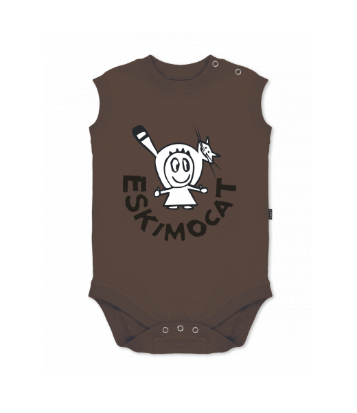 Dětské body bez rukávů pro děti s potiskem 375 ESKIMOCAT v barvě CHESTNUT
