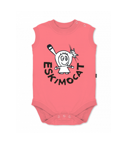 Dětské body bez rukávů pro děti s potiskem 375 ESKIMOCAT v barvě LOSOSOVA