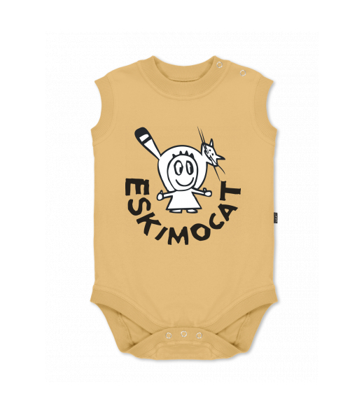 Dětské body bez rukávů pro děti s potiskem 375 ESKIMOCAT v barvě MUSTARD