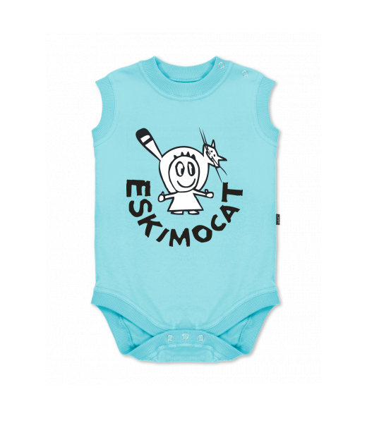 Dětské body bez rukávů pro děti s potiskem 375 ESKIMOCAT v barvě PASTEL BLUE