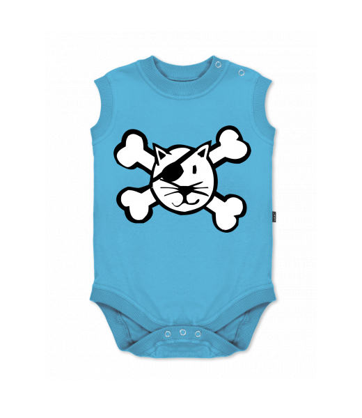 Dětské body bez rukávů pro děti s potiskem 377 PUSSY v barvě BLUE ATOLL