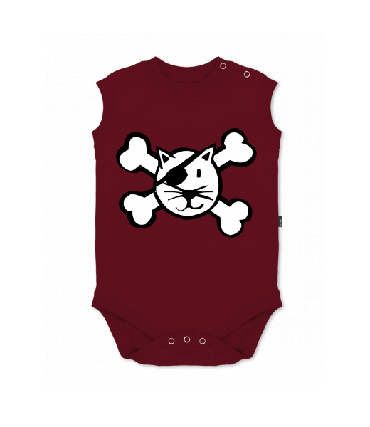 Dětské body bez rukávů pro děti s potiskem 377 PUSSY v barvě DARK RED
