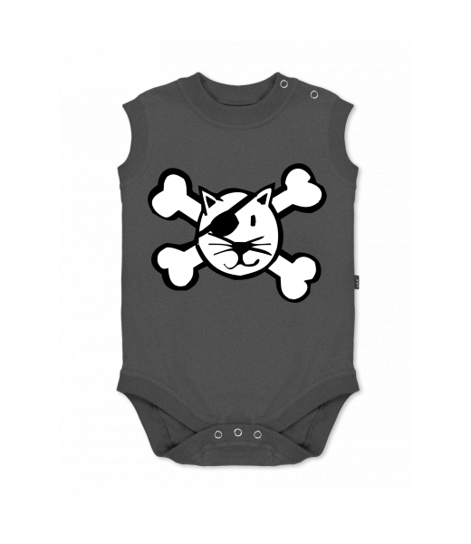 Dětské body bez rukávů pro děti s potiskem 377 PUSSY v barvě GRAFIT