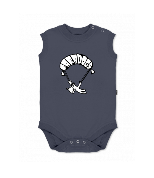 Dětské body bez rukávů pro děti s potiskem 378 PARADOGS v barvě GRAY INK