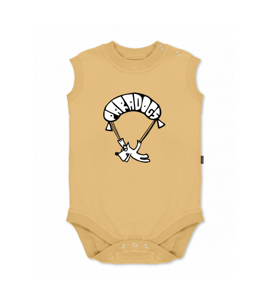 Dětské body bez rukávů pro děti s potiskem 378 PARADOGS v barvě MUSTARD