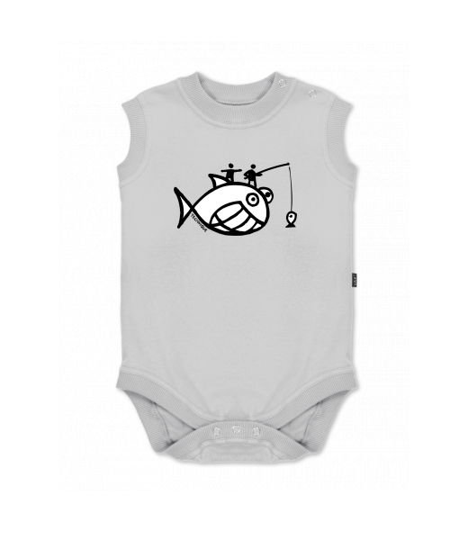 Dětské body bez rukávů pro děti s potiskem 407 TECHNIQUE v barvě CEMENT