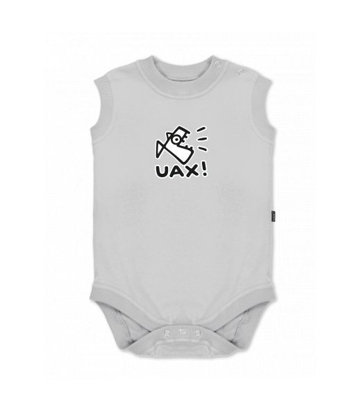 Dětské body bez rukávů pro děti s potiskem 412 LOGO UAX! SMALL v barvě CEMENT
