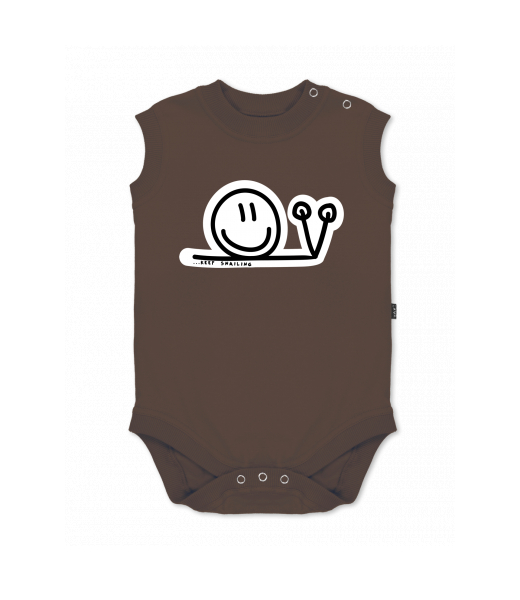 Dětské body bez rukávů pro děti s potiskem 420 KEEP SNAIL v barvě CHESTNUT