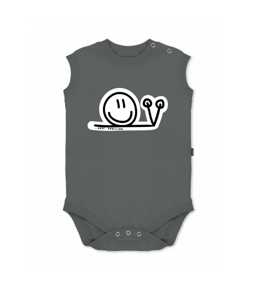 Dětské body bez rukávů pro děti s potiskem 420 KEEP SNAIL v barvě DARK GRAY