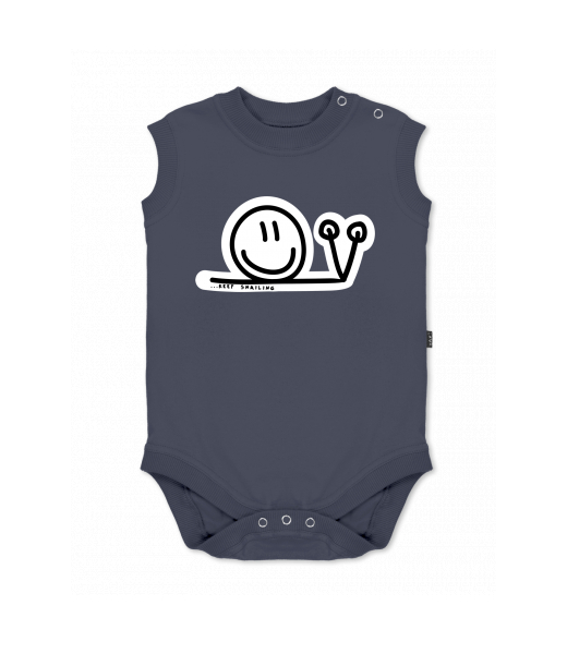 Dětské body bez rukávů pro děti s potiskem 420 KEEP SNAIL v barvě GRAY INK