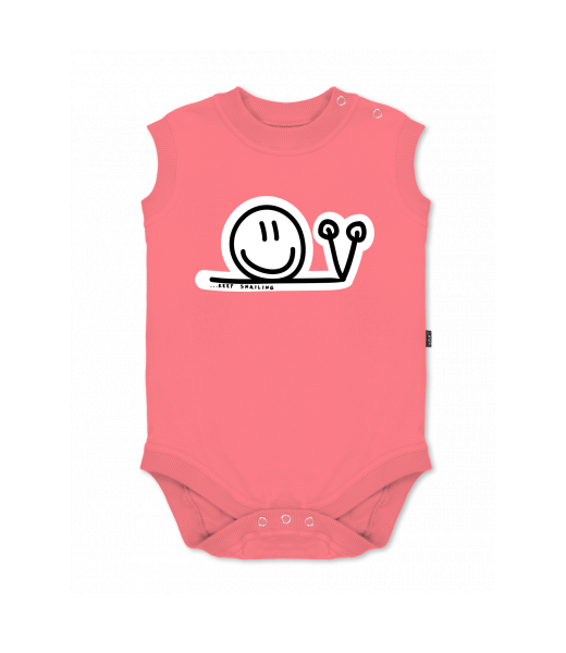 Dětské body bez rukávů pro děti s potiskem 420 KEEP SNAIL v barvě LOSOSOVA