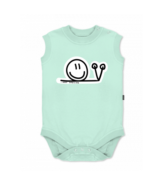 Dětské body bez rukávů pro děti s potiskem 420 KEEP SNAIL v barvě MINT