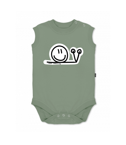 Dětské body bez rukávů pro děti s potiskem 420 KEEP SNAIL v barvě OLIVA