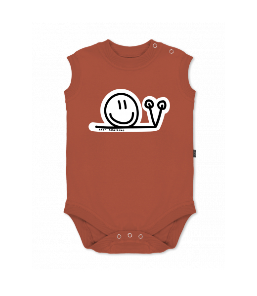Dětské body bez rukávů pro děti s potiskem 420 KEEP SNAIL v barvě TERRA