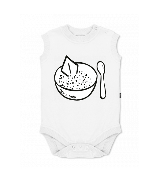 Dětské body bez rukávů pro děti s potiskem 428 PICU S RYZU v barvě WHITE