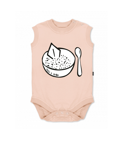 Dětské body bez rukávů pro děti s potiskem 428 PICU S RYZU v barvě CAPPUCINO
