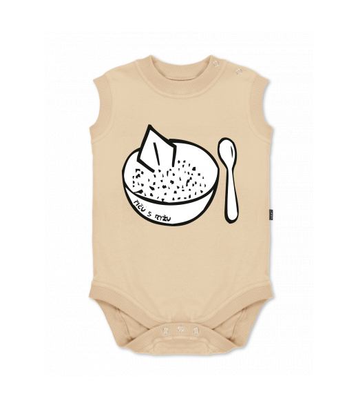 Dětské body bez rukávů pro děti s potiskem 428 PICU S RYZU v barvě CARAMEL