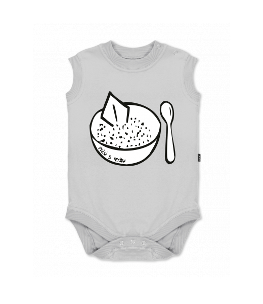 Dětské body bez rukávů pro děti s potiskem 428 PICU S RYZU v barvě CEMENT
