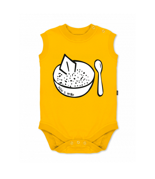 Dětské body bez rukávů pro děti s potiskem 428 PICU S RYZU v barvě GOLDEN CREAM