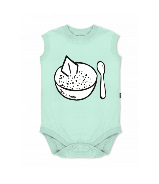 Dětské body bez rukávů pro děti s potiskem 428 PICU S RYZU v barvě MINT