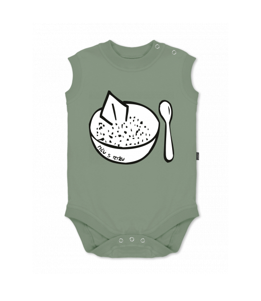 Dětské body bez rukávů pro děti s potiskem 428 PICU S RYZU v barvě OLIVA