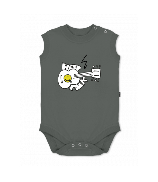 Dětské body bez rukávů pro děti s potiskem 441 KEEP FOLK v barvě DARK GRAY