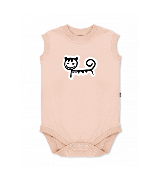 Dětské body bez rukávů pro děti s potiskem 476 TIGER v barvě CAPPUCINO